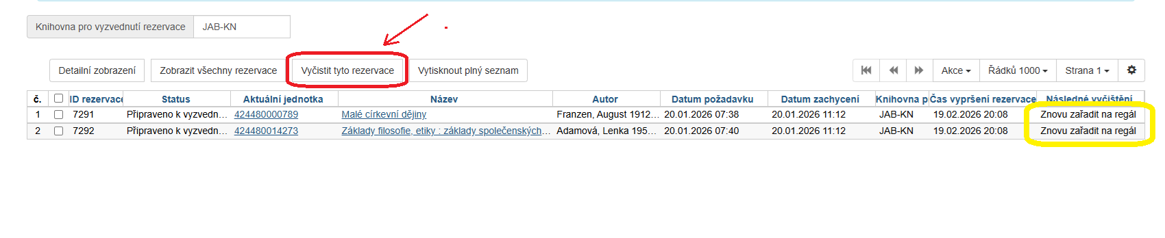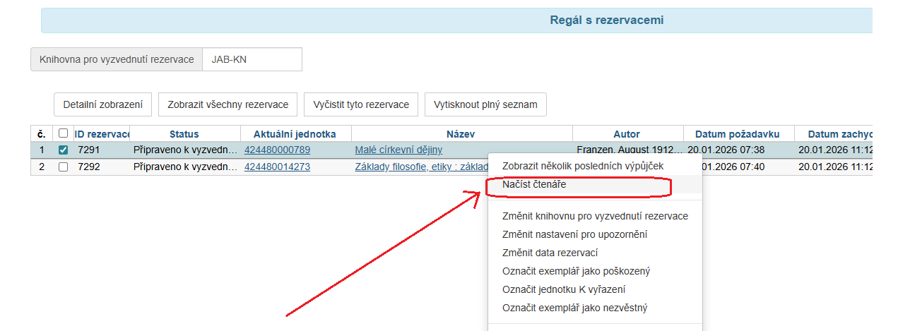 - které mají rezervační status „Nesprávná police“ (může nastat při změněně knihovny pro vyzvednutí).