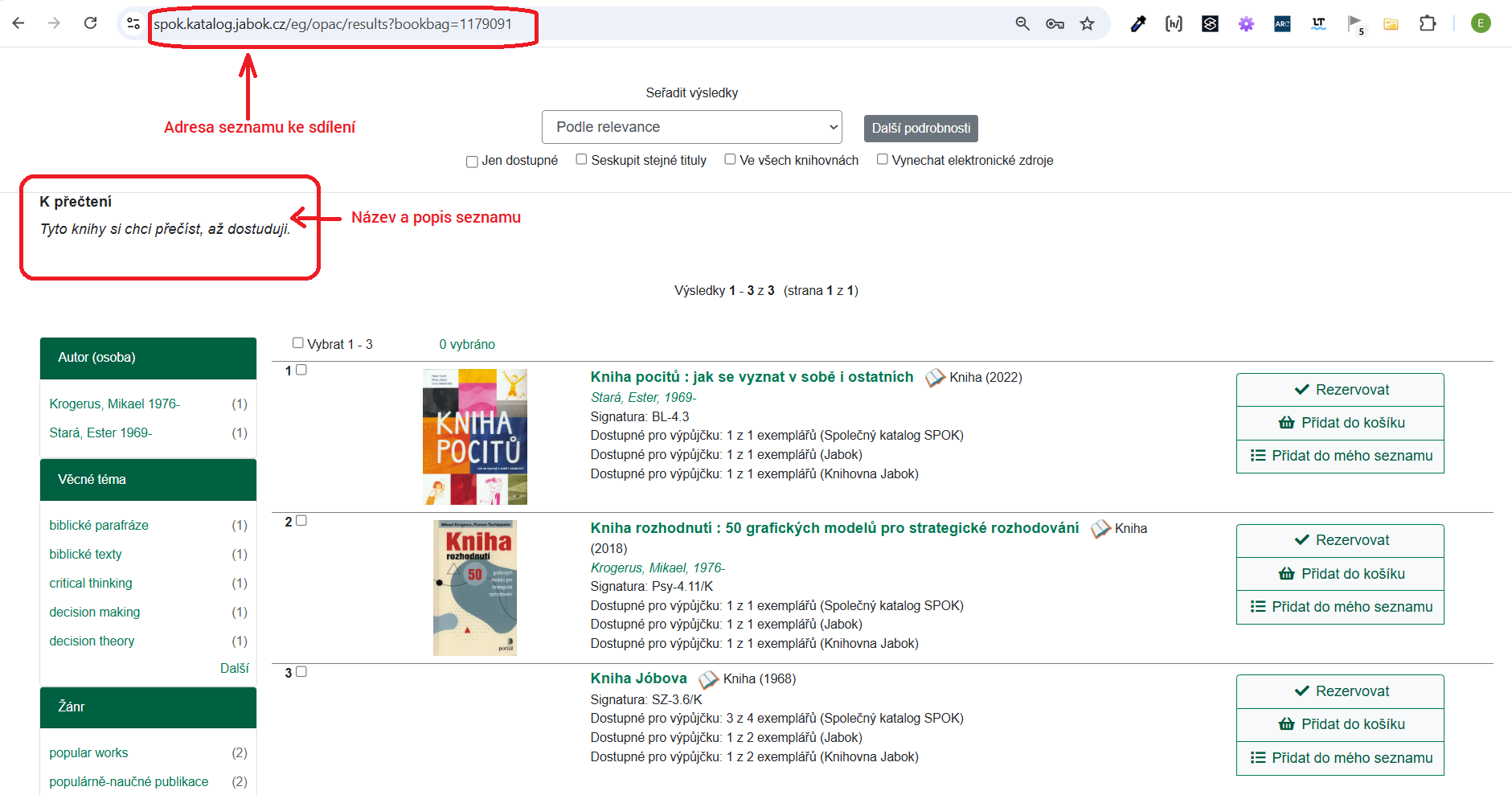 Svůj seznam knih můžete sdílet s ostatními pomocí odkazu.